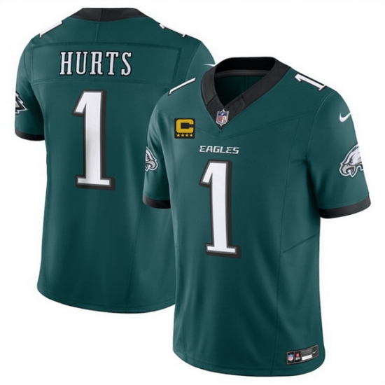 - Men Philadelphia Eagles 1 Jalen Hurts Black With C Patch Cool Base Stitched Baseball Jersey